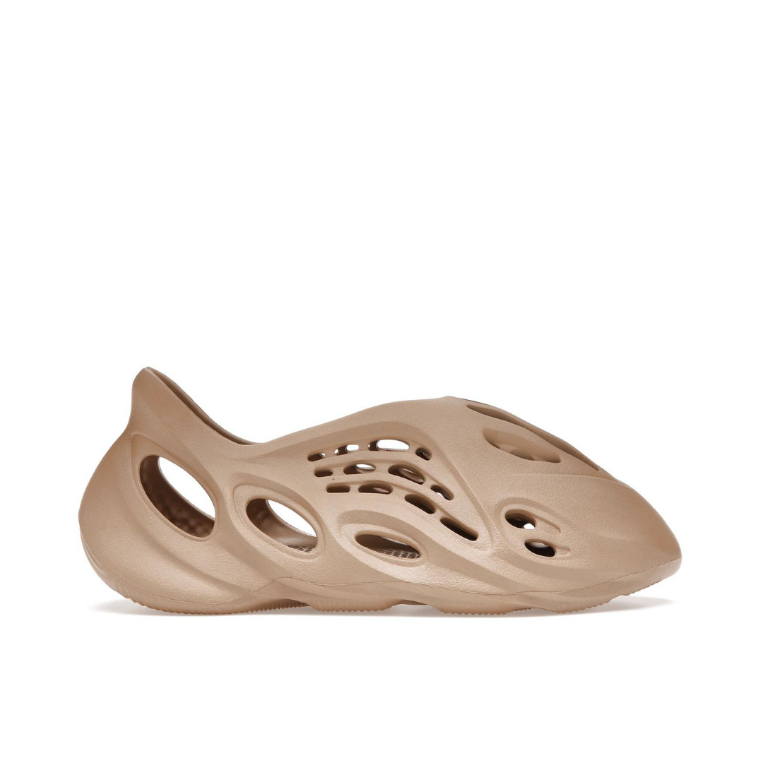 The adidas Yeezy Foam Runner ‘Ochre’ complements its futuristic aesthetic with a subdued, monochromatic finish. A dark beige hue suffuses the one-piece foam build, featuring ventilation ports of varying shapes and dimensions that enhance breathability while adding depth to the slip-on’s flowing lines. ‘FOAM RNNR’ is debossed on the interior collar, alongside the shoe size and ‘Made in USA’ branding. Underfoot, the outsole features a wavy traction pattern for reliable grip.
