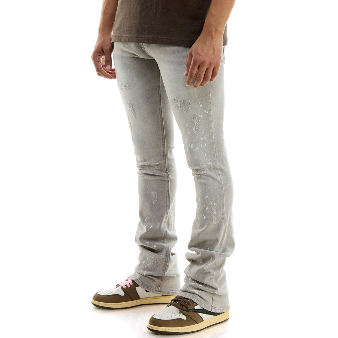 KDNK Distressed Skinny Flare Jeans (Grey)(4559)