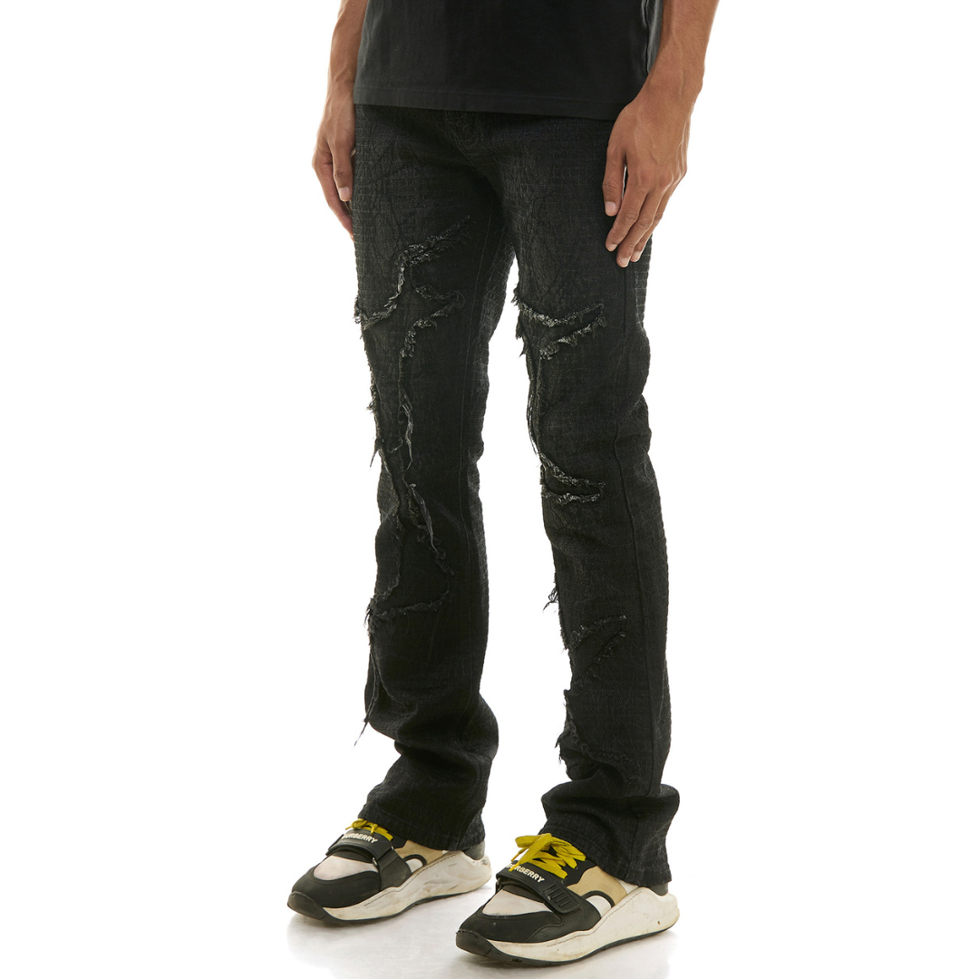KDNK Spider Web Skinny Flare Jeans (Black)(4743)