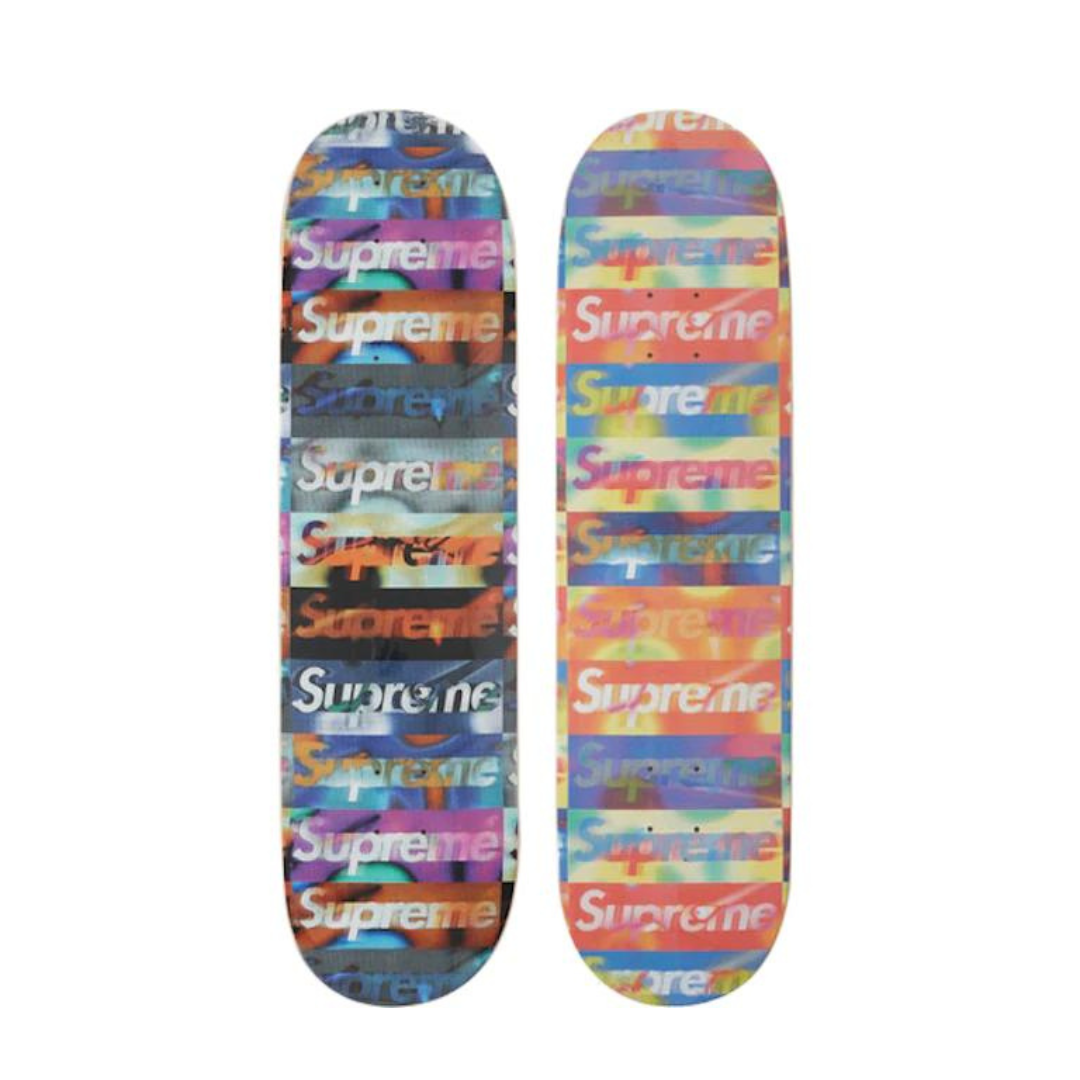 Supreme Distorted Logo Skateboard Deck (Black/Yellow Set)