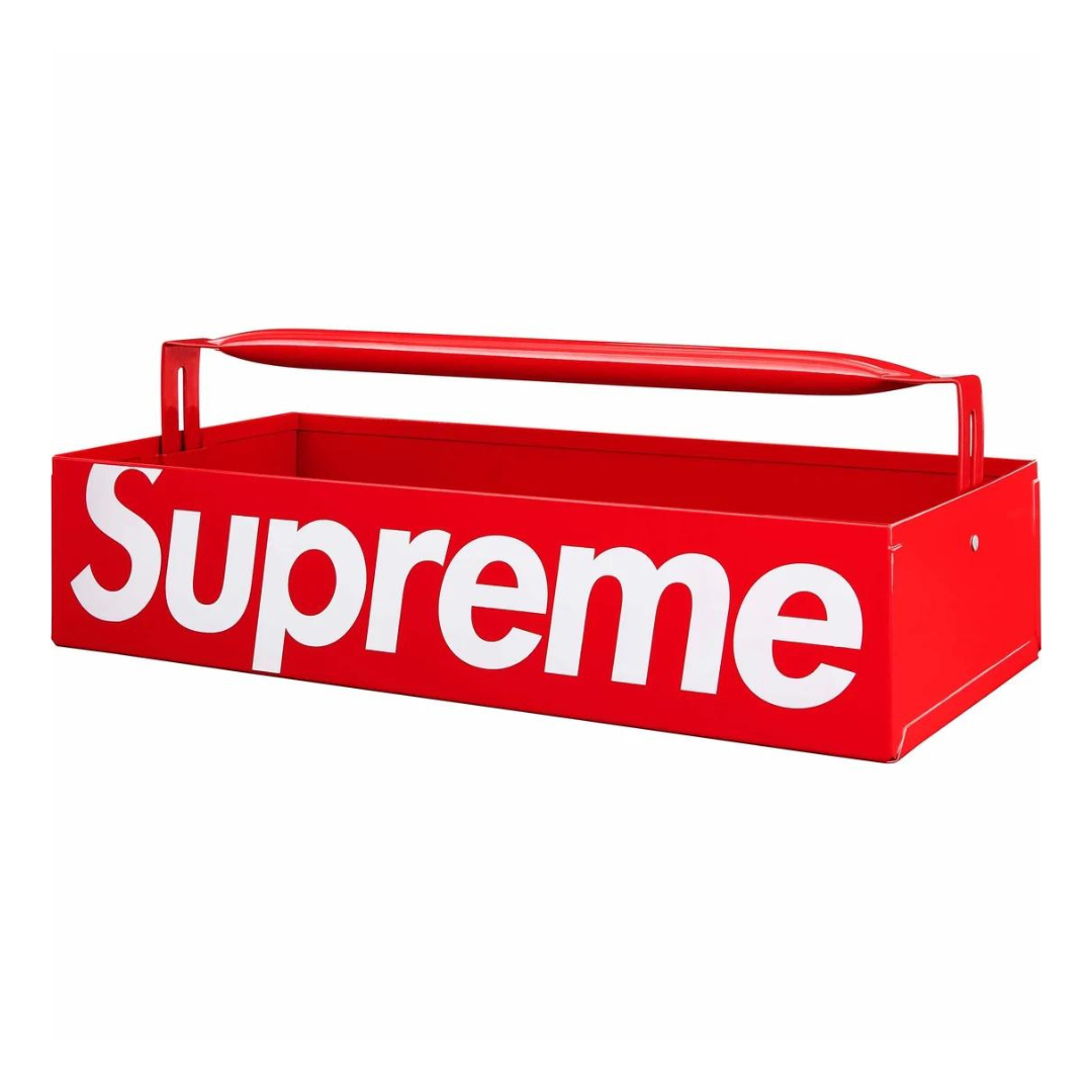 Tote tray with 20-Gauge steel construction and printed logo. 4.5 ”x 20.44 ”x 10”. Made exclusively for Supreme.